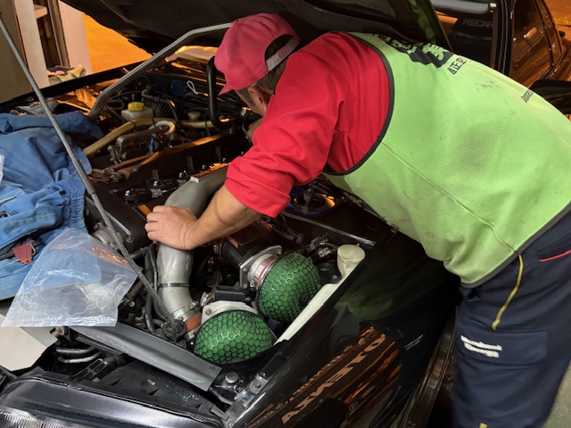 配管までシルビア用でワンオフ制作してます、パーティーさん器用ですね、ジュラテックで