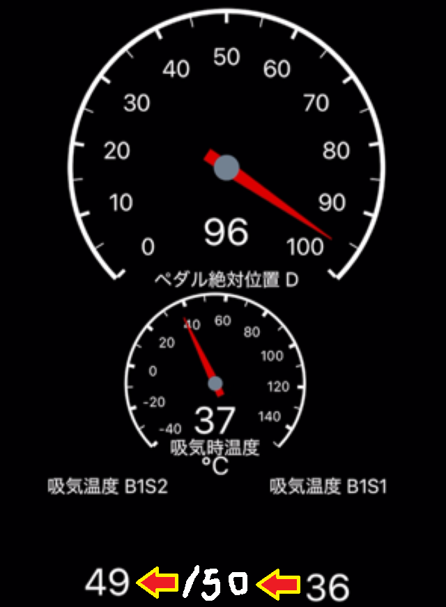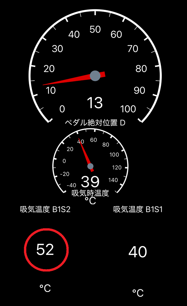 赤丸の吸気温度B1S2がマイナス40度になった