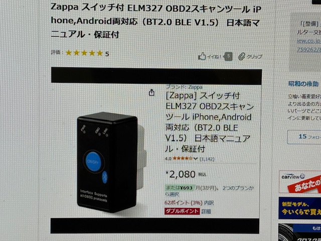 AmazonでiPhone対応のOBD2ポートスキ