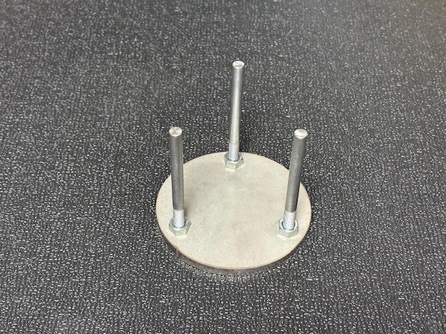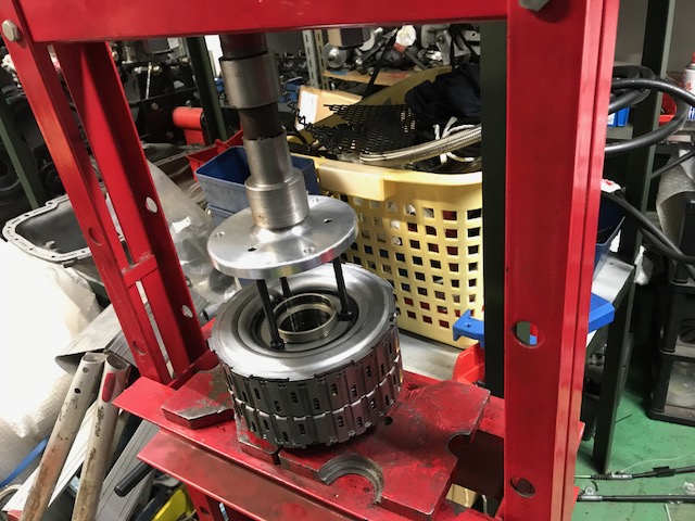プレスでクラッチパックのCリ ングを外す治具に使います。 画像は昔の試作治具です。 ネジを回すと棒の高さが微調整出来るので 真っ直ぐ押せます、しかも3本足なので隙間 からC外す工具が入りやすいです。 Ver2からは皿の径をクラッチ強化シールより2パ イ大きな径まで拡大したのでクラッチ強化シール 圧入治具として使えます、プレスで押しても丈夫 なステンレス6ミリです。 プレスで圧入した画像です。