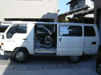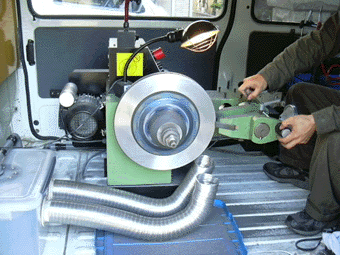 ブレーキ研磨機装備のワンボックスで自宅まで来てくれ素早く研磨です。