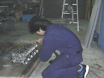 クランク曲がり修正&回転バランス取り (東洋内燃機工業にて)