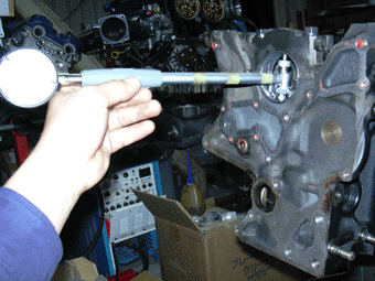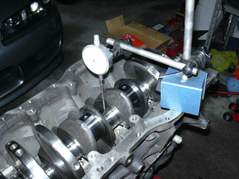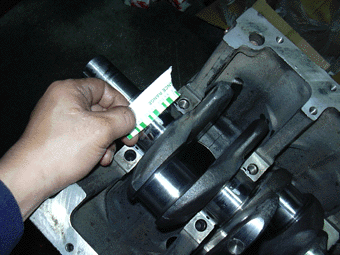 プラスチゲージで、めあす確認します! 1番と5番のメインメタルだけ入れてクランク曲がり確認中プラマイ0.002