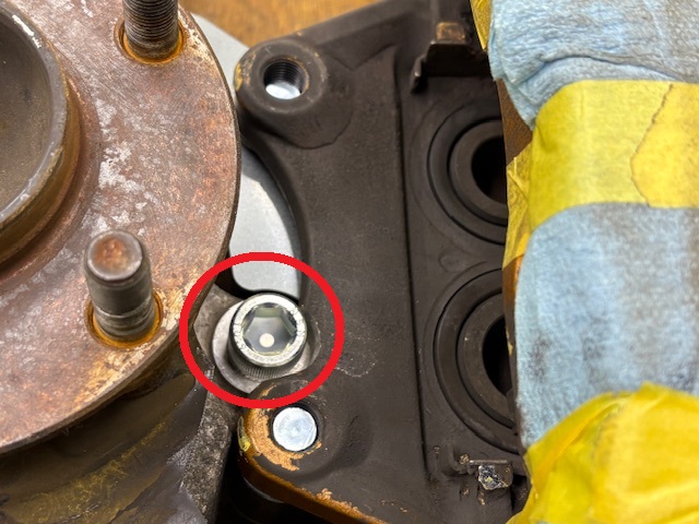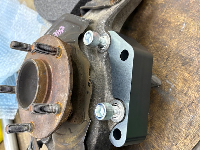 ローター側からナックル固定ボルトを差し込む為、ロ